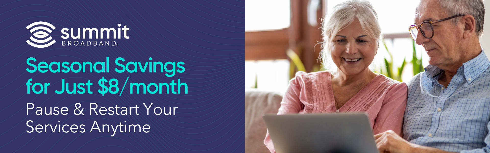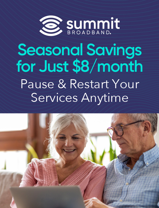 - Seasonal Hold – Instead of disconnecting your Summit Broadband services, try our seasonal hold program. For only $8 per month, you can avoid returning your equipment and having to schedule a new install when you return.